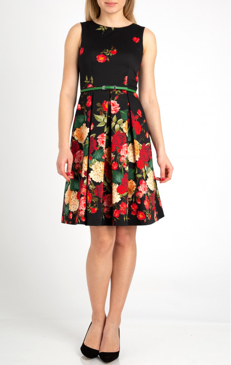 Elegant midi dress in soft satin fabric in Blue Moon with black graphic print