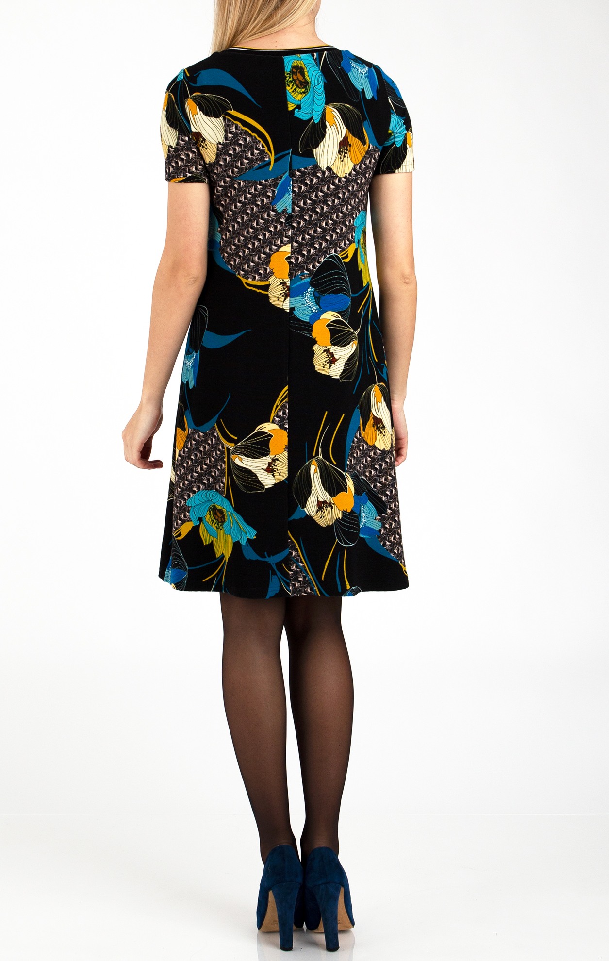 Elegant a-line mini dress with a beautiful floral print. The style features a contrast round neckline, short sleeves and above the knee lenght . Lined