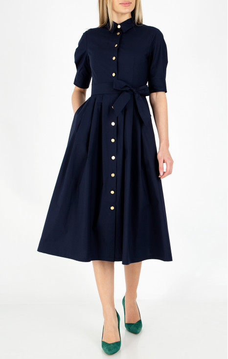 Elegant midi dress in soft satin fabric in Blue Moon with black graphic print
