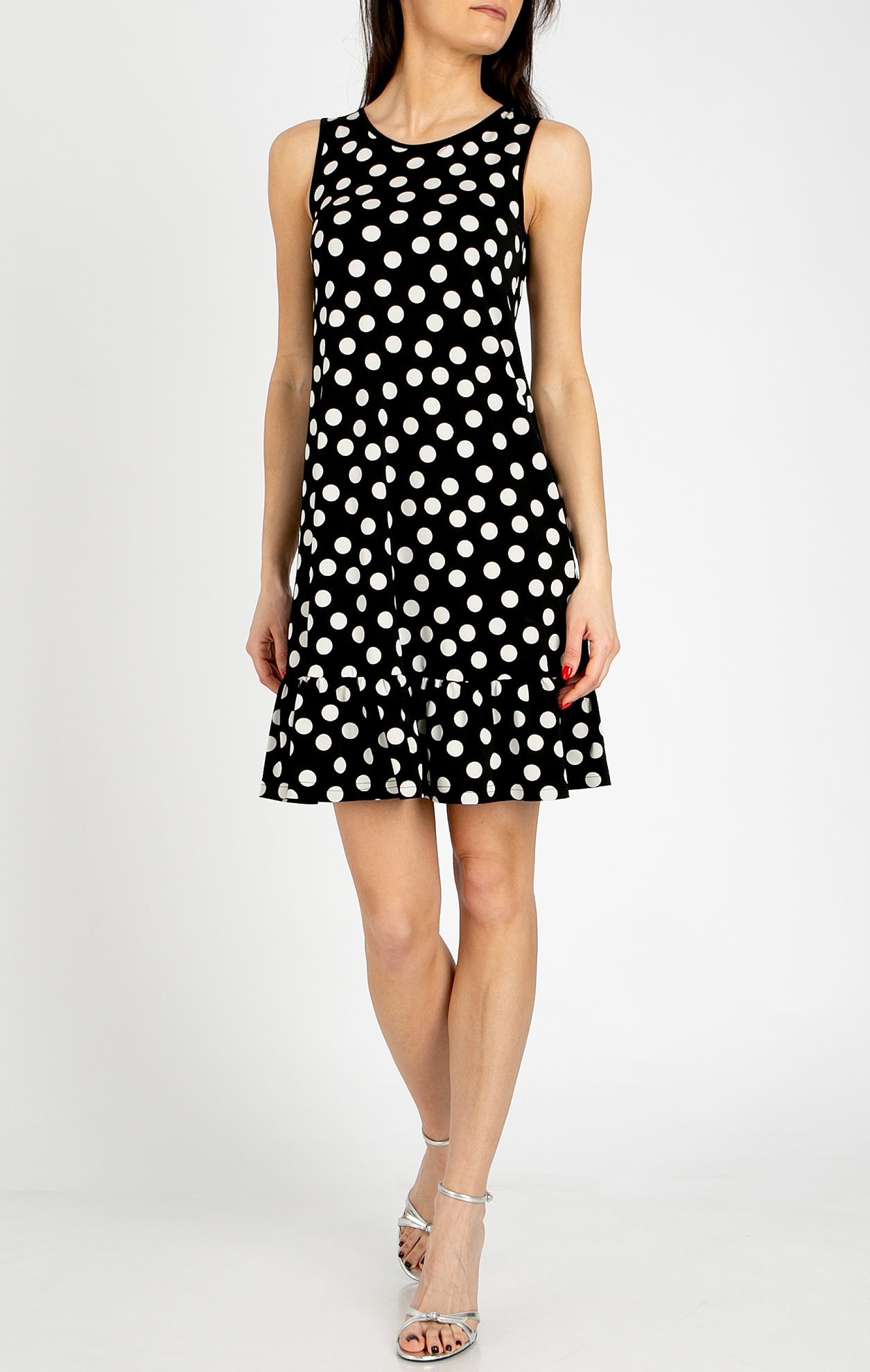 Elegant short dress with a ruffle, crafted from luxurious jersey in a Polka Dots pattern