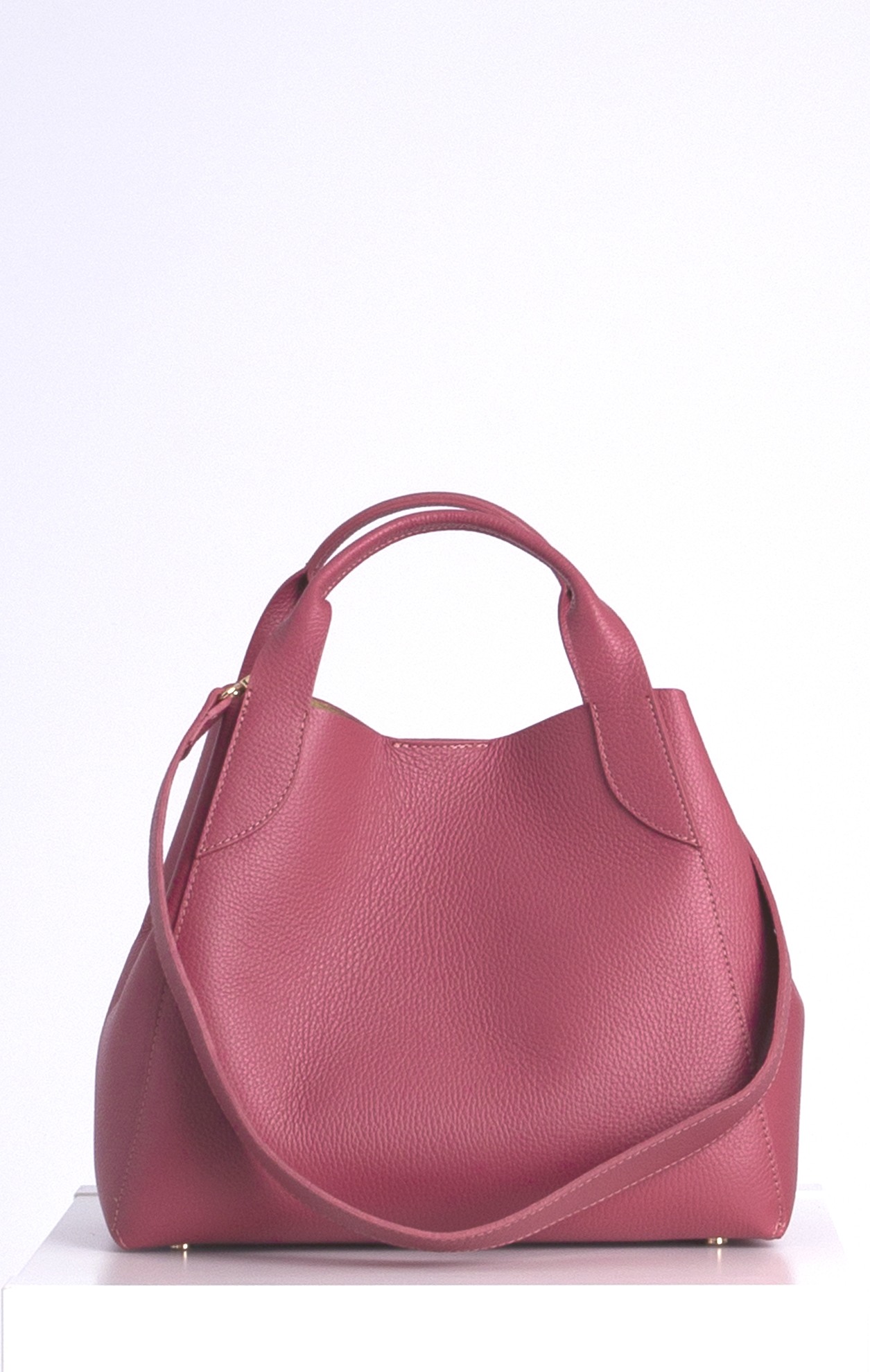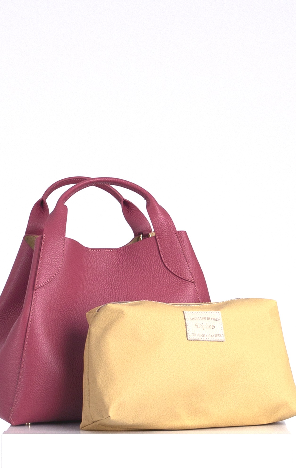 Handmade genuine leather bag in Desert Rose color, without zipper. The model of the bag has a general section. Inside there is a large polyester bag with zipper and logo. Great ability to organize and easily transfer your luggage to another bag. Made in Italy by Daphne. Width: 37 cm Height: 26 cm Depth: 13 cm