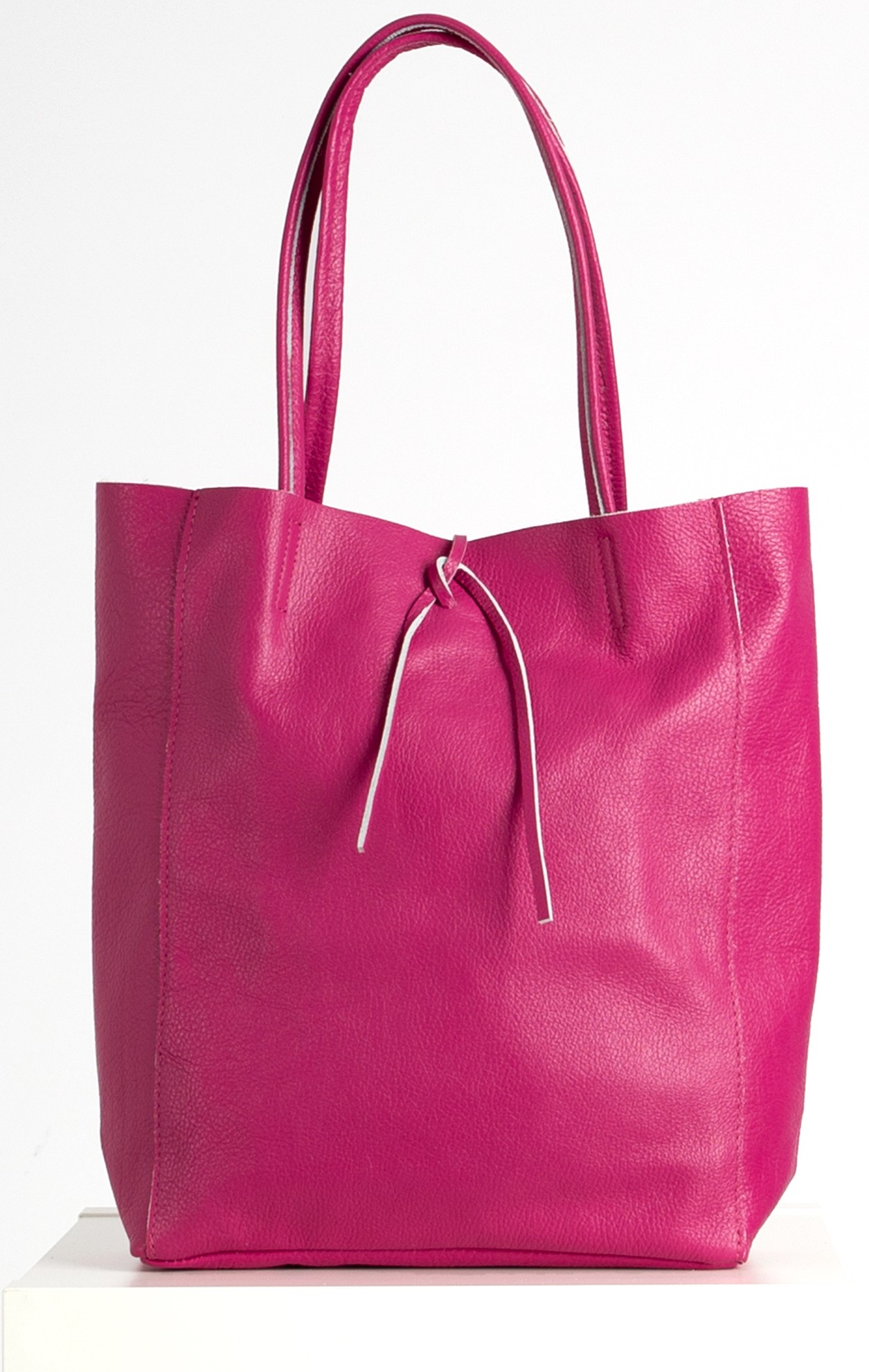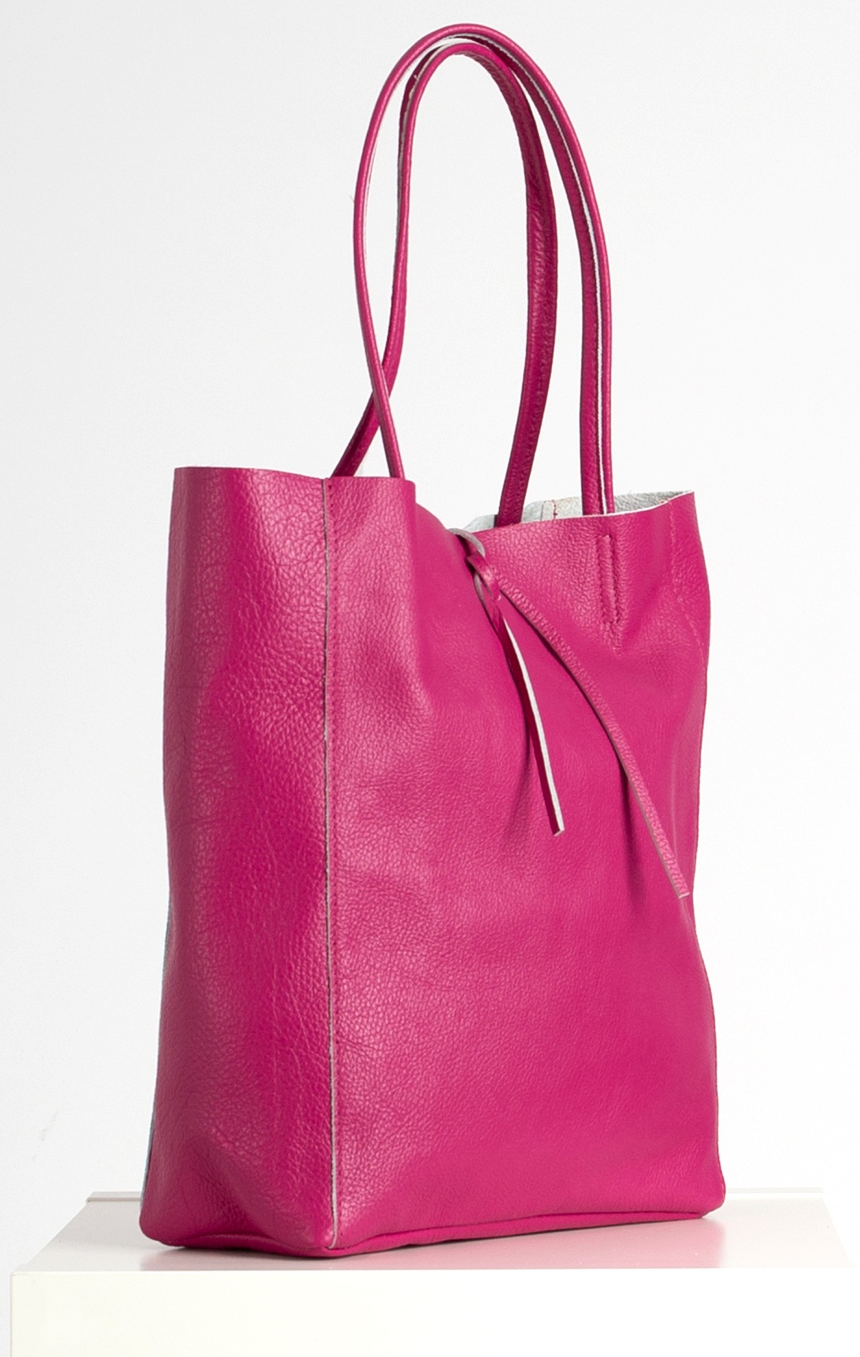Large Real Leather Tote Bag in Fuchsia Colour with a magnet closure. Our Tote bag is both elegantly smart and effortlessly practical. Crafted from luxe leather, it features shoulder straps, a magnetic fastening and opens to reveal a spacious interior with an iternal zipper pocket for your smaller valuables. Made in Italy exclusively for Daphne.