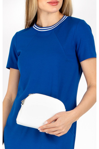 A line viscose dress with a bright floral print. The style is knee-length, with a round neckline, short puff sleeves and an adjustable fabric waist belt. The fine flowy viscose gives a feeling of comfort and freedom of movement. Unlined.Jersey mini dress with playful frills. The style features short sleeves, around the knee-length, a round neckline and beautiful flowing frills. The fine light-weight jersey gives a feeling of comfort and freedom of movement. Unlined.