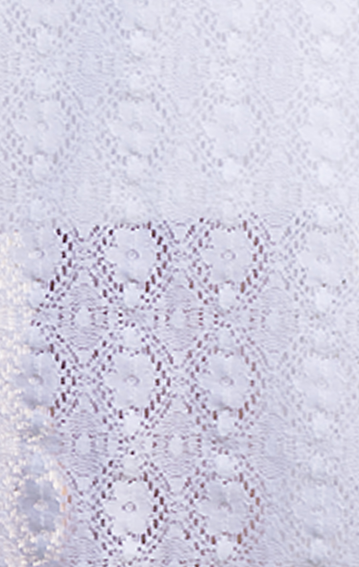 White lace A-line dress with midi length. The model has a classic cotton collar, button fastening and removable shoulder straps. Comfortable dress for everyday and for warm summer evenings. Pair with a colourful leather or cotton belt from the Daphne collection. Available in sizes 36 to 46. The belt is available separately.
