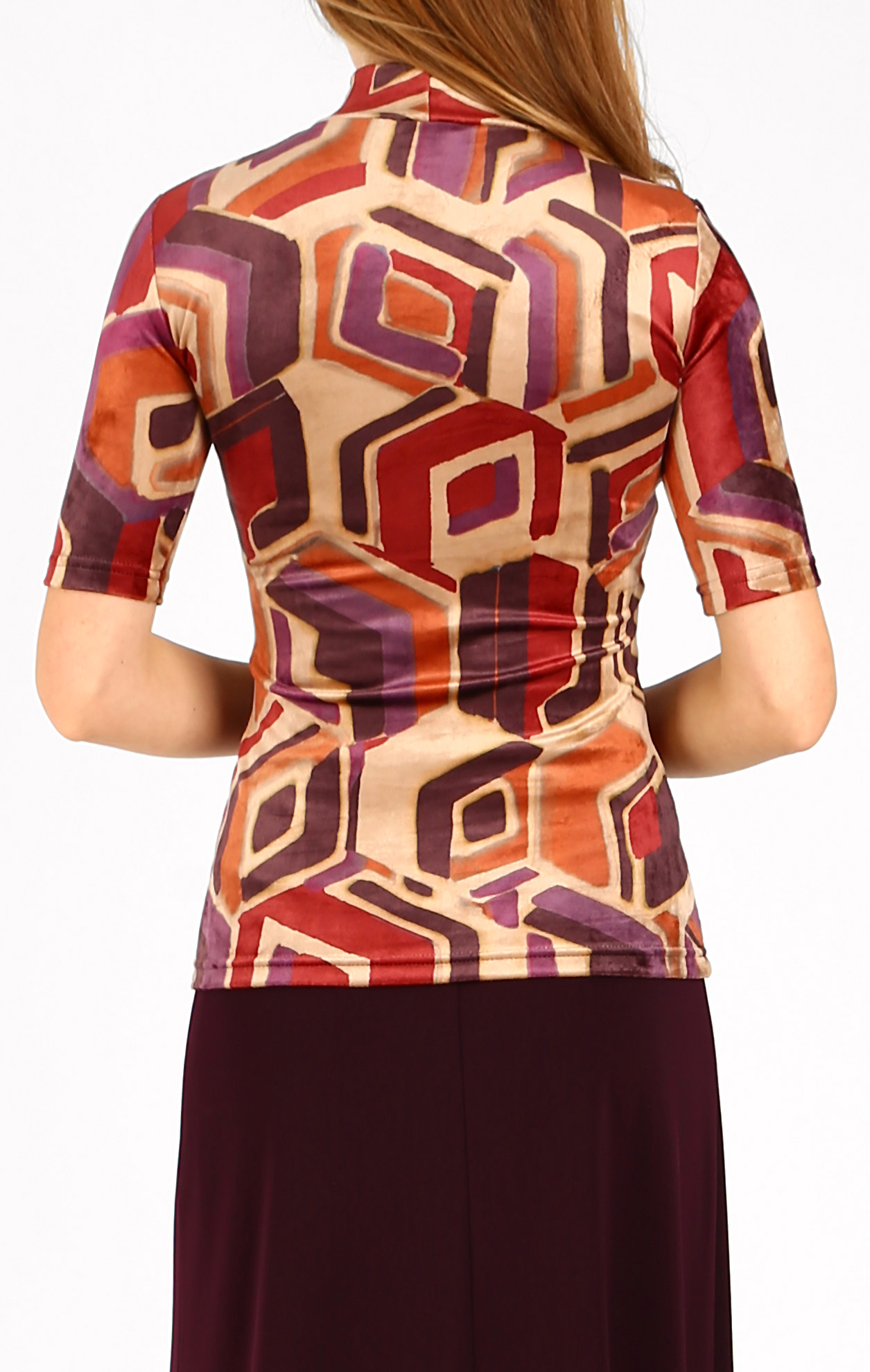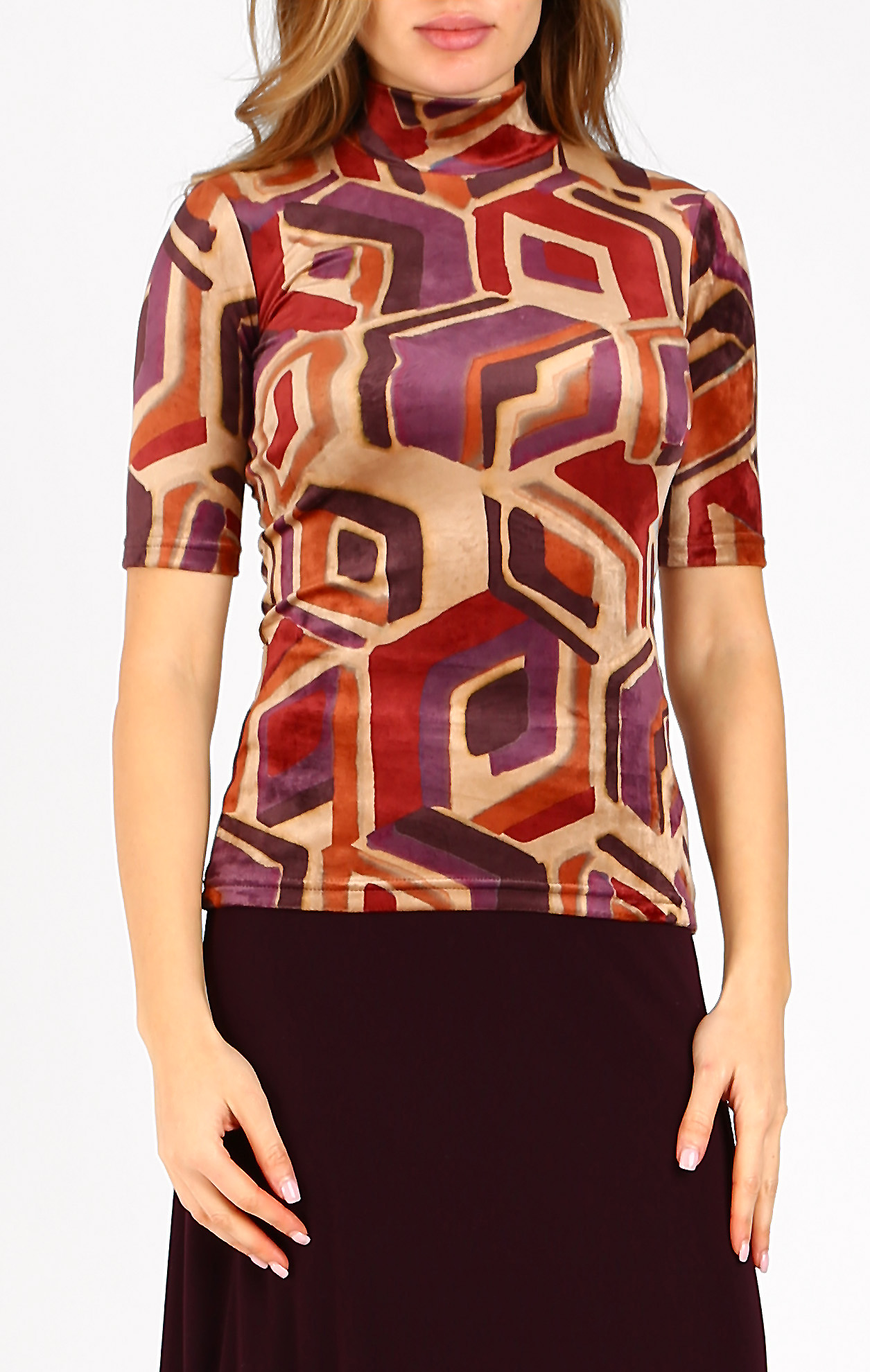Velvet Turtleneck Top in Brick, Plum Purple and Beige