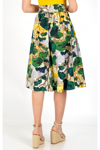 Blouse in a loose silhouette in Golden Green light jersey with Swarovski crystals. Loose at the top and slightly fitted down, with short sleeves and V-neck. It adds a colourful mood to the look, and you can easily combine with trousers or a skirt from the Daphne collection.