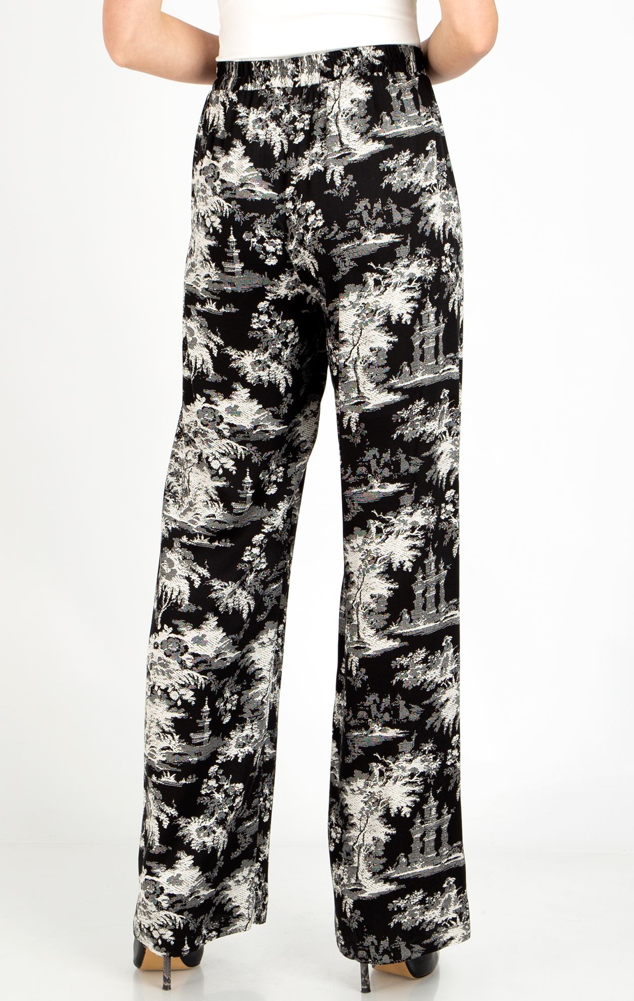 Pants in lightweight viscose with black white print