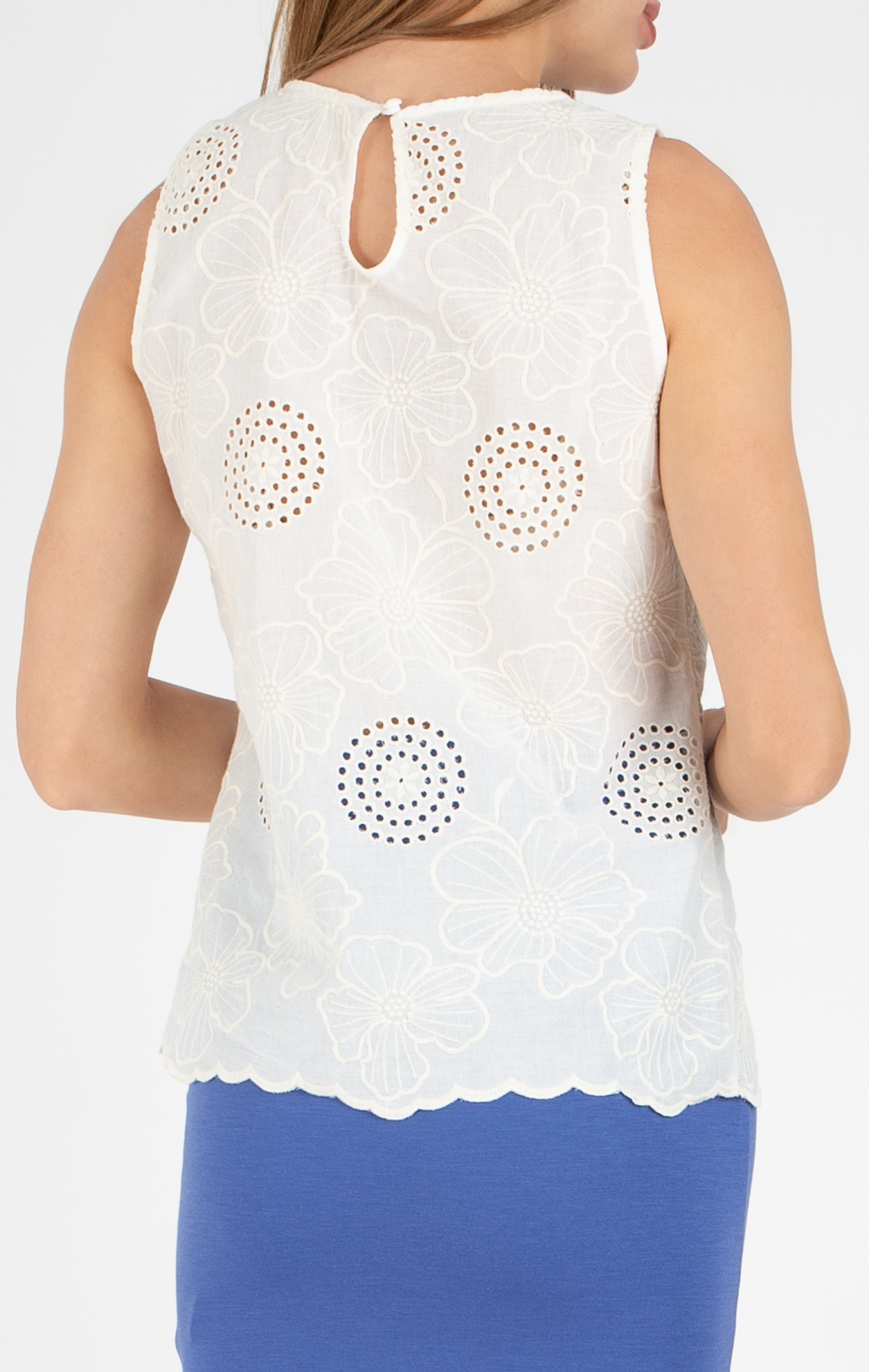 Women’s sleeveless summer top with English embroidery in Bamboo Color