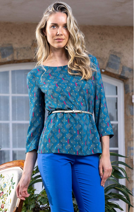 Stylish blouse in soft viscose in Azure Blue with floral print